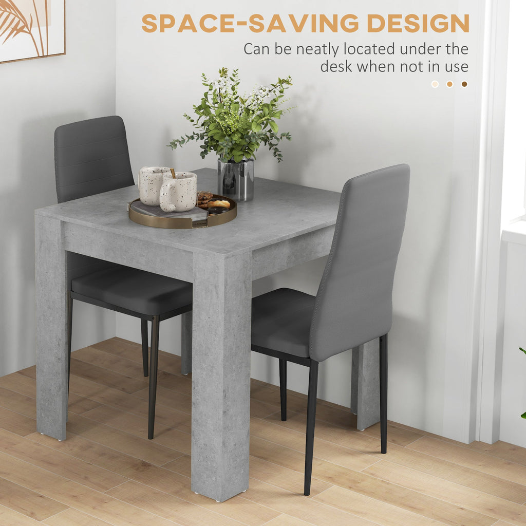 Enhance your dining area with this 3-piece dining set, perfect for creating a cozy and stylish atmosphere in smaller spaces. The set includes a square dining table and two comfortable stools, ideal for intimate meals or casual gatherings. The stools are wrapped in smooth PU leather and padded with soft sponge for a comfortable seating experience, while their space-saving design allows them to be neatly tucked under the table when not in use. Featuring a faux cement effect and delicate channel-tufted design, this set offers a touch of understated elegance that complements a variety of interior styles. Constructed with sturdy powder-coated steel legs and a melamine-coated table surface, this set ensures durability and easy maintenance.