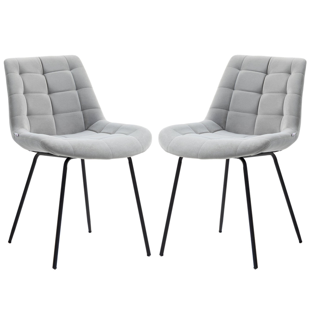This set of 2 accent chairs offers a perfect blend of comfort and style, making it ideal for cozy dinners or casual conversations. Whether used as accent chairs, leisure chairs, side chairs, or vanity chairs, these pieces add a modern touch to any space. The soft velvet-feel upholstery provides a luxurious seating experience, while the thickly padded seat and backrest offer excellent support for extended periods of relaxation. Built with powder-coated steel splayed legs, these chairs ensure stability and durability, suitable for daily use. The non-skid foot pads protect your floor from scratches, making these chairs both practical and stylish. With their classic tufted design and modern aesthetic, these chairs enhance any home décor.