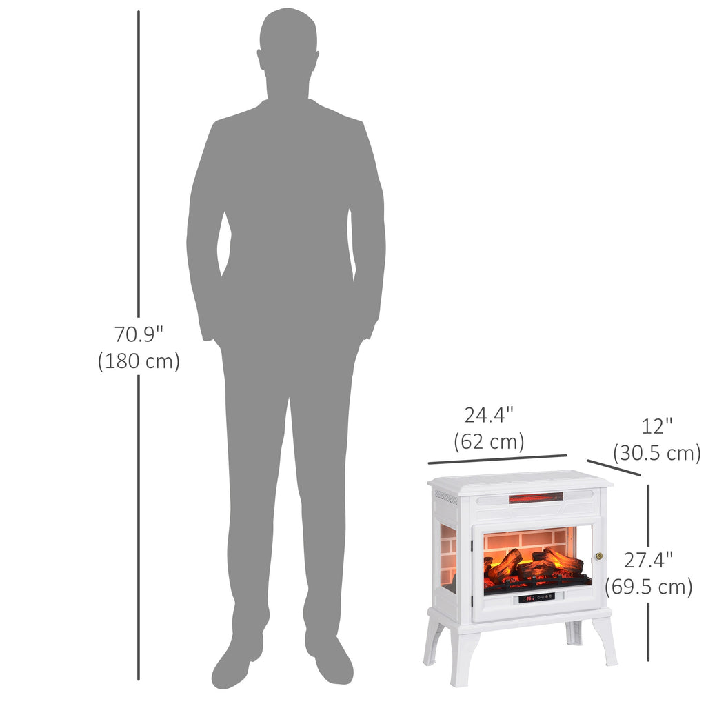 Experience both warmth and elegance with this sleek and portable electric stove fireplace. Equipped with adjustable heat settings (1000W/1500W), it can effectively warm areas up to 1,000 sq ft, ensuring your space is cozy and inviting. The flame effect features 3D technology, offering a realistic, flickering fire display that can operate with or without heat, so you can enjoy the ambiance year-round. With four brightness levels and a 3-sided viewing panel, this faux fireplace adds an extra touch of sophistication to any room. Conveniently, it includes a remote control for easy adjustments from across the room, and its infrared quartz technology helps maintain natural humidity for comfortable warmth. Safety is a priority, with an electronic timer for 1-12 hour auto shut-off, as well as overheating and tip-over protection, so you can relax with peace of mind.