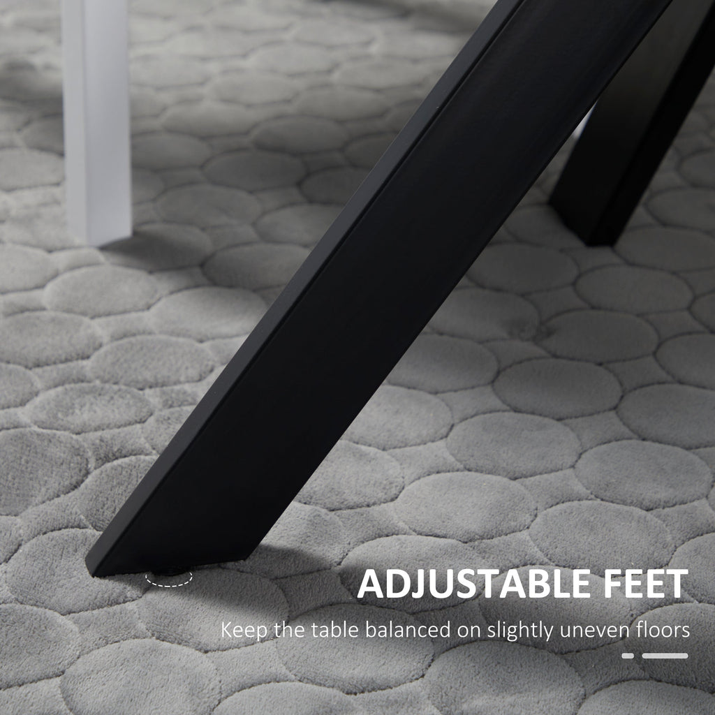 Contemporary Design: MDF tabletop with a veneered faux stone finish and black crisscross legs for modern appeal.