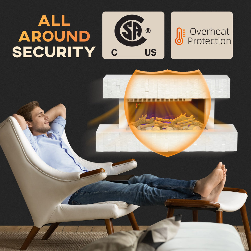 Transform your living room into a cozy retreat with this stylish electric fireplace heater. Featuring a realistic 3D flame effect with three flame colors and six intensity settings, it creates a warm, inviting ambiance year-round without producing heat. The chic brick wall appearance adds a modern touch to your decor. Adjustable temperature control allows you to set the room temperature from 41°F to 98.6°F, perfect for heating spaces ranging from 161 sq. ft. to 430 sq. ft. This electric fireplace also features a convenient 8-hour timer, smart heating that turns on automatically when the room temperature drops, and overheat protection for added safety. It’s CSA certified for peace of mind and includes a remote for easy adjustments. Wall-mounted or freestanding, this fireplace is the perfect addition to any room.