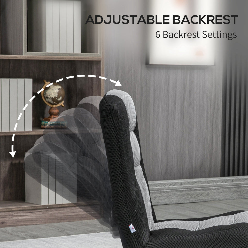 This multifunctional floor chair with back support is perfect for a variety of activities, from reading and meditating to playing board games or providing extra seating during gatherings. The chair's 6 adjustable backrest positions allow for ultimate comfort, including a 3-level forward tilt for easy packing. The 360° swivel base adds convenience and fun, allowing you to rotate your body with ease. Its breathable mesh surface and plush padding ensure a comfortable experience, whether you're relaxing or focused on meditation. For added convenience, the backrest can be adjusted and stored seamlessly when not in use. With a solid steel frame and wide base, this chair offers durability and stability, making it a great choice for any home or family room.