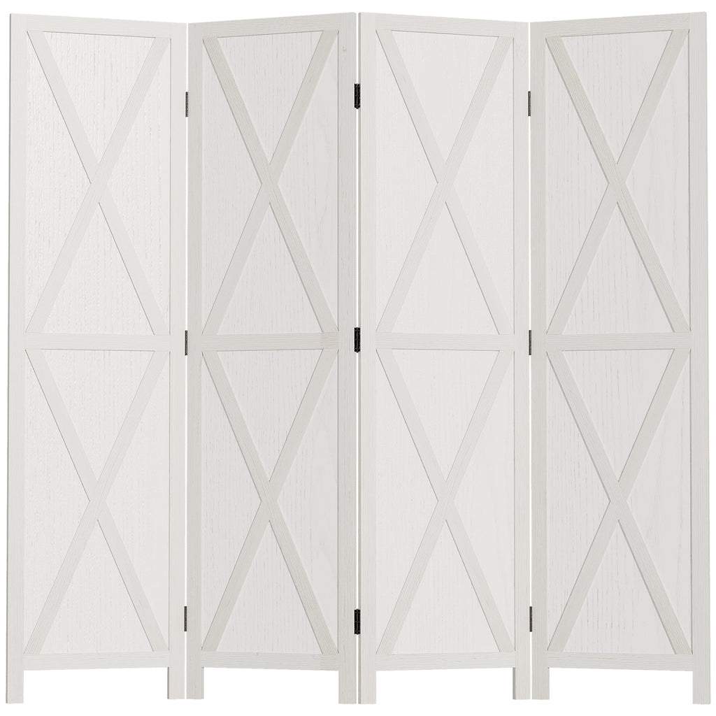 Add both privacy and style to your space with this charming 4-panel folding room divider. Designed to create a cozy and intimate atmosphere, this privacy screen is perfect for dividing large rooms or creating a smaller, enclosed space within a single room. Its farmhouse style, with X-shaped patterns on solid paulownia wood, brings a rustic and natural touch to any living room, bedroom, or home office. The divider is built with a robust frame, featuring 9 metal hinges that allow for smooth folding and unfolding, while the elevated base promotes better air circulation, keeping the room feeling fresh. When not in use, the folding design makes it easy to store in a corner, saving valuable space. Ready to use straight out of the box with no assembly required, this folding screen is the ideal addition to your home, offering both functionality and aesthetic appeal.