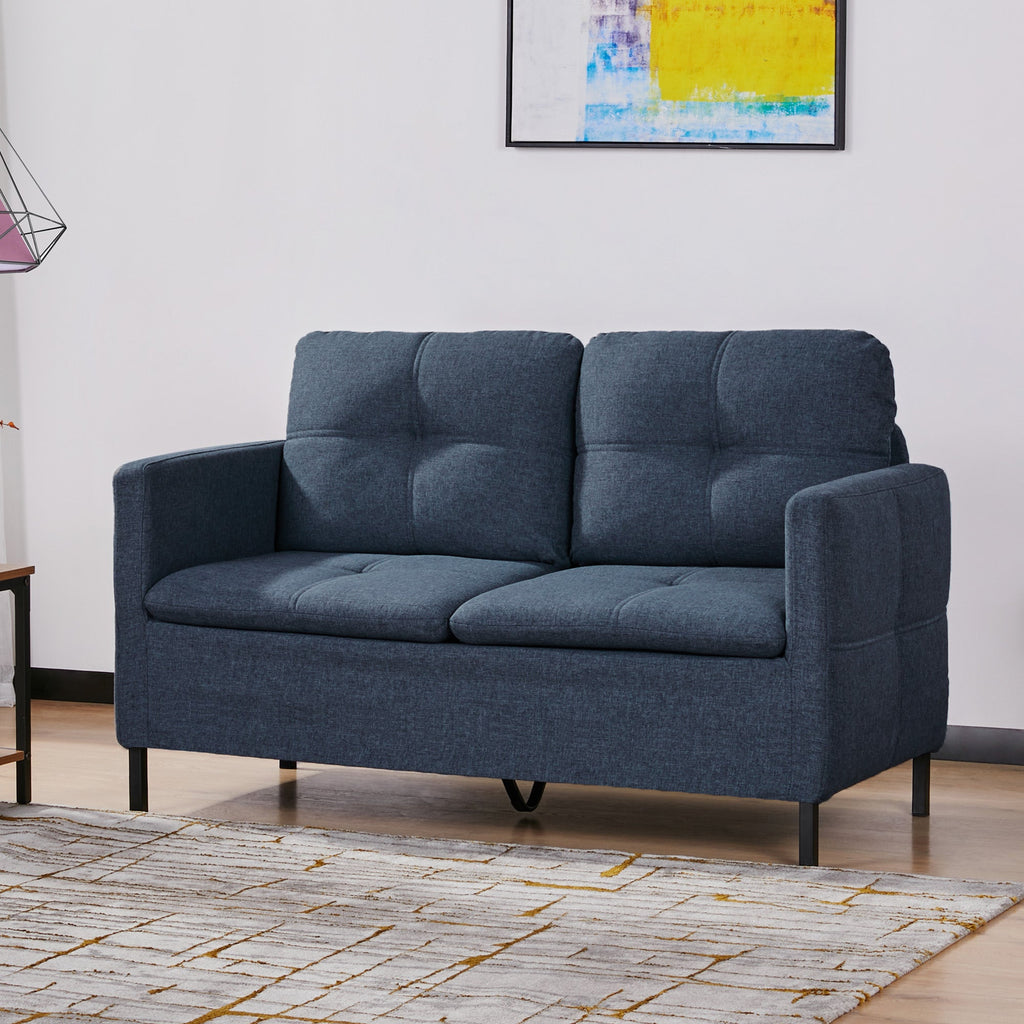 This cozy two-seater sofa is designed to offer both comfort and style in smaller spaces. With a width of 53.1" (135cm), it's spacious enough to relax with friends or enjoy some personal downtime, but compact enough to fit seamlessly into your bedroom or living room. The sofa features breathable linen fabric, two padded seat cushions, and two overstuffed back cushions to provide the comfort and support you deserve. Its robust steel frame and legs ensure durability and stability, making it built to last. With classic cross stitching and a luxurious design, this loveseat adds sophistication to any room.
