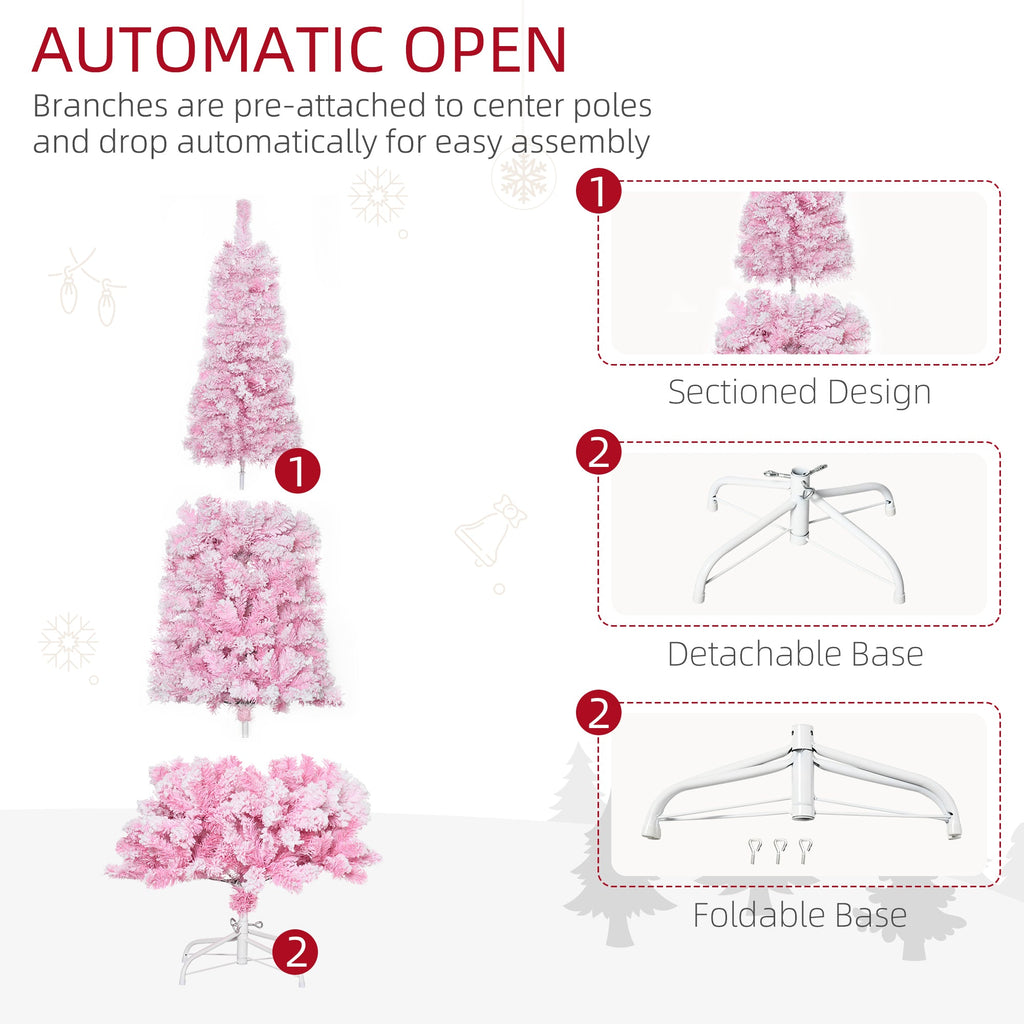 Celebrate the season with this stunning unlit snow-flocked pink artificial Christmas tree, designed to bring elegance and joy to your home without the hassle. Its space-saving slim profile is perfect for smaller spaces, while the lifelike snow-flocked branches create a magical winter ambiance. This flame-retardant tree ensures your family's safety while you decorate with endless possibilities—from sparkling lights to personalized ornaments. Easy to assemble and store, it offers effortless holiday cheer, making it the perfect centerpiece for creating unforgettable memories with loved ones.