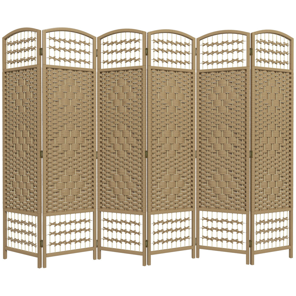 Transform your space with this chic 6-panel room divider screen, designed to add both privacy and style to any room. Perfect for creating intimate, cozy areas within a larger space, this room divider helps maintain a sense of connection while offering each side its own private space. The hand-woven design brings a rustic charm, crafted from paper rope and bamboo sticks, with a solid wooden frame and a curved arch top. The intricate woven pattern enhances the natural beauty of the screen, infusing a warm, organic tone into your home décor. This room partition is crafted with double-sided woven paper, a sturdy wooden frame, and durable metal hinges, ensuring lasting elegance and functionality. Ideal for maintaining privacy without sacrificing natural air circulation or ambient lighting, this divider screen is as versatile as it is attractive. Effortlessly fold it up for easy storage when not in use.