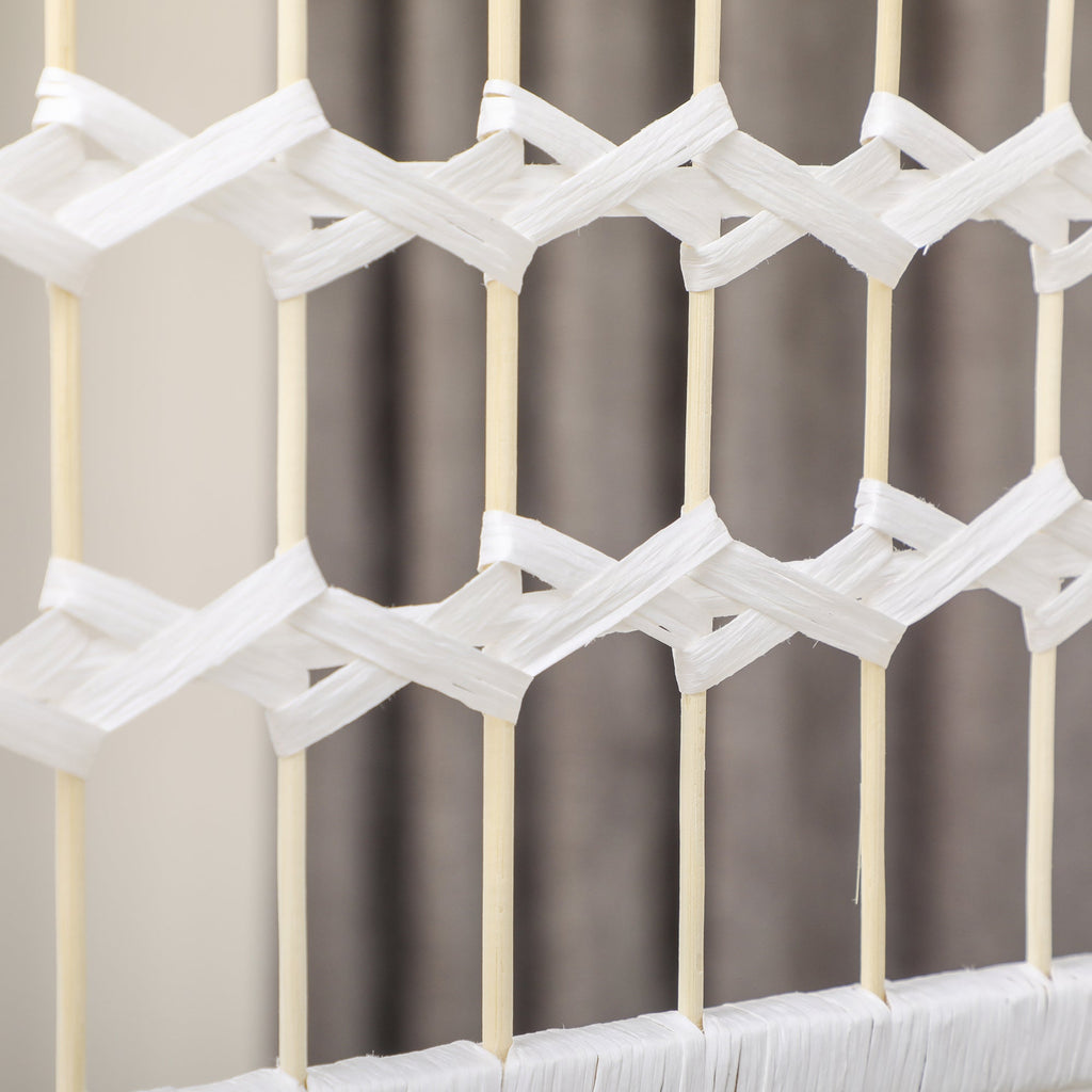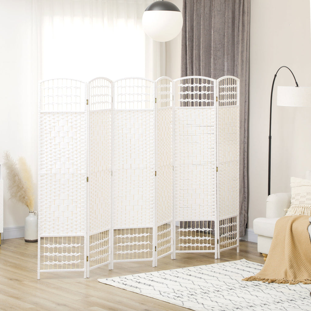 Transform your space with this chic 6-panel room divider screen, designed to instantly add both privacy and style to your room. Perfect for creating intimate and cozy areas within a larger space, this room divider helps maintain a sense of connection while offering each side its own private space. The hand-woven design brings rustic charm to your home, with an intricate woven pattern crafted from paper rope and bamboo sticks, complemented by a wooden frame and a curved arch top. This combination of natural materials provides a warm, inviting tone to any room. Crafted with double-sided woven paper, a sturdy wooden frame, and durable metal hinges, the room divider guarantees long-lasting elegance and functionality. The open design allows for natural air circulation and ambient lighting, making it both a stylish and practical addition to your space. When not in use, simply fold the divider and store it away in a corner for convenient space-saving.