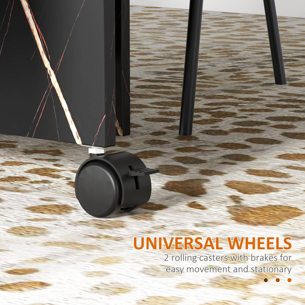 Mobile and Versatile: Two lockable castor wheels make it easy to move and secure the table where you need it.