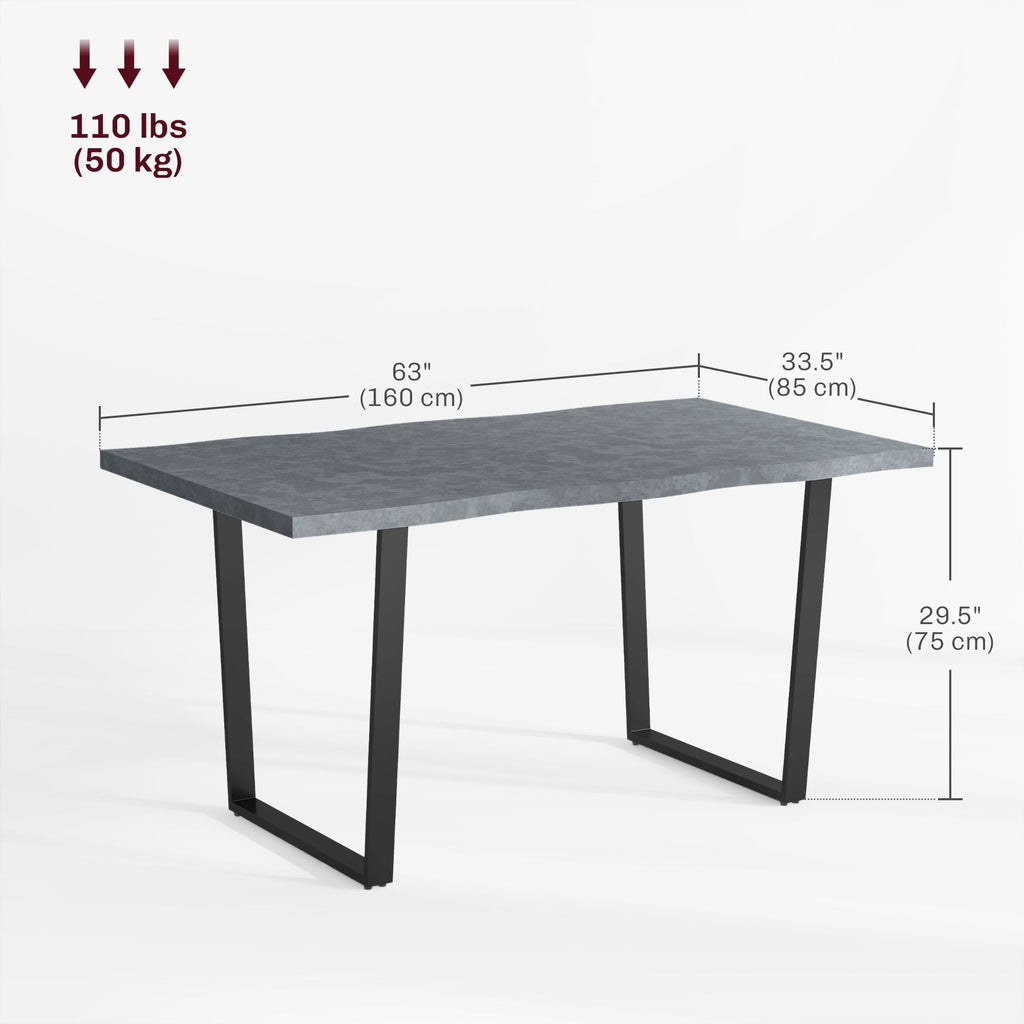 Elevate your dining experience with this Thick Wavy Edge Dining Table, designed to impress your guests with its contemporary aesthetics. Featuring a distinctive wavy-edged MDF top covered with faux cement-effect veneer, this table makes a bold statement in any modern dining room. Supported by sturdy black steel legs, it combines industrial style with functional durability, offering a perfect balance of style and strength. The table comfortably seats up to 6 people, making it an ideal choice for family gatherings or casual meals. It can also double as a desk or workstation in your kitchen or dining area. Non-slip pads on the table feet ensure stability and protect your floors from scratches.