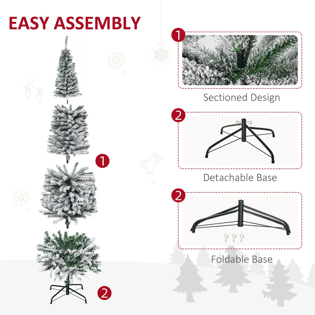 Create a winter wonderland in your home with this elegant Snow-Flocked Pencil Christmas Tree. Featuring snow-dusted branches, this tree brings the beauty of a snowy landscape indoors, making it a stunning focal point for the holiday season. Designed with a dense, full-bodied appearance, the tree offers a realistic charm while maintaining a slim profile, perfect for small spaces, corners, or entryways. The sturdy metal base provides reliable support, keeping the tree upright and secure throughout the festivities. With a sectioned design and detachable, collapsible feet, this artificial Christmas tree ensures effortless assembly, dismantling, and storage, making holiday decorating a breeze.