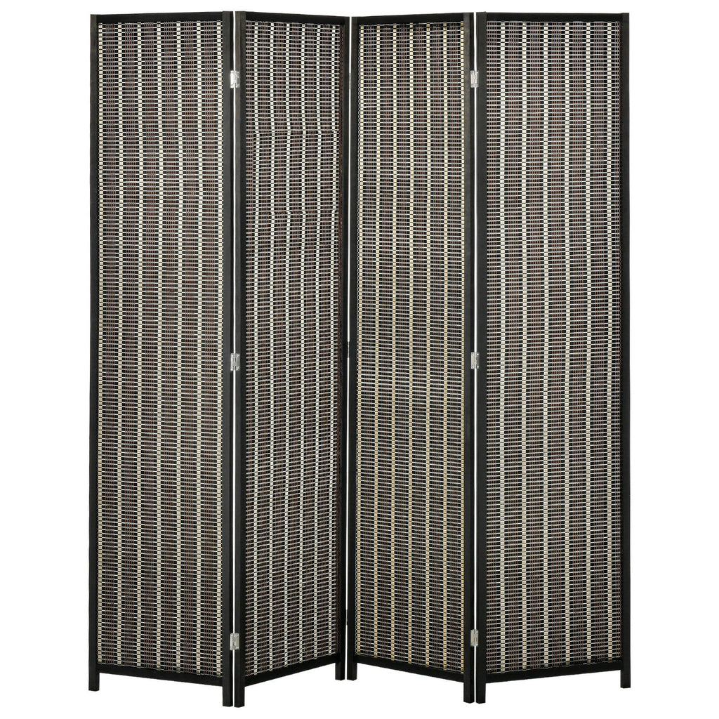 Add privacy and style to any room with this 4-panel room partition screen. Designed to cater to the average height of most individuals, this partition creates instant privacy, making it perfect for dividing large rooms or creating smaller, more enclosed spaces within a single room. Featuring a hand-woven bamboo rattan design with a beautiful blend of shiny rose gold and silver threads, this partition adds a natural and sophisticated touch to your living room, bedroom, or home office. Made with a solid wood frame and metal hinges, the screen is sturdy, smooth, and allows air circulation. Its folding design makes it easy to store in corners when not in use, saving space and making it convenient to move around. Ready to use straight out of the box, no assembly required.