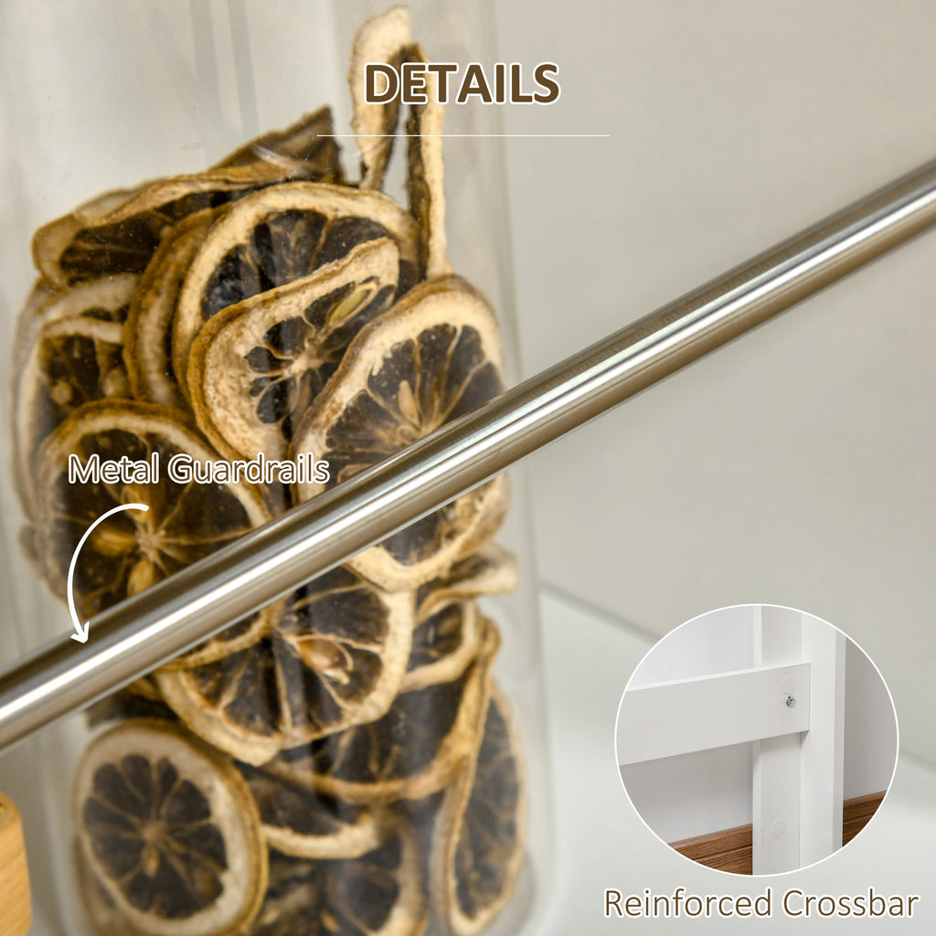 Storage Shelf: Includes a 3-tier shelf with side guardrails to safely store glassware, food, and magazines.