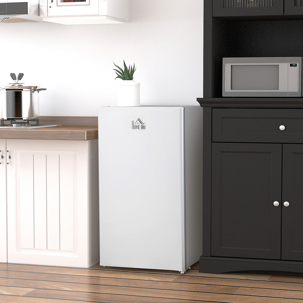 This 2-in-1 small refrigerator is the perfect solution for compact living spaces, combining both a freezer with manual defrosting and a fridge. Ideal for storing a variety of items such as vegetables, fruits, beverages, frozen food, and ice cream, this mini fridge offers versatile functionality. With a 5-level adjustable thermostat, the fridge section can be set from 32℉ to 50℉, keeping your food fresh and at the ideal temperature. The refrigerator operates efficiently with a low-energy consumption compressor, cooling quickly while remaining quiet at just 39dB. The reversible door offers flexibility to suit most room layouts, and the two adjustable feet ensure stability on uneven floors. Additionally, the fridge comes with an ice box and an ice shovel for added convenience. Whether placed in your flat, RV, dormitory, home office, living room, or bedroom, this compact mini fridge fits perfectly in any space.