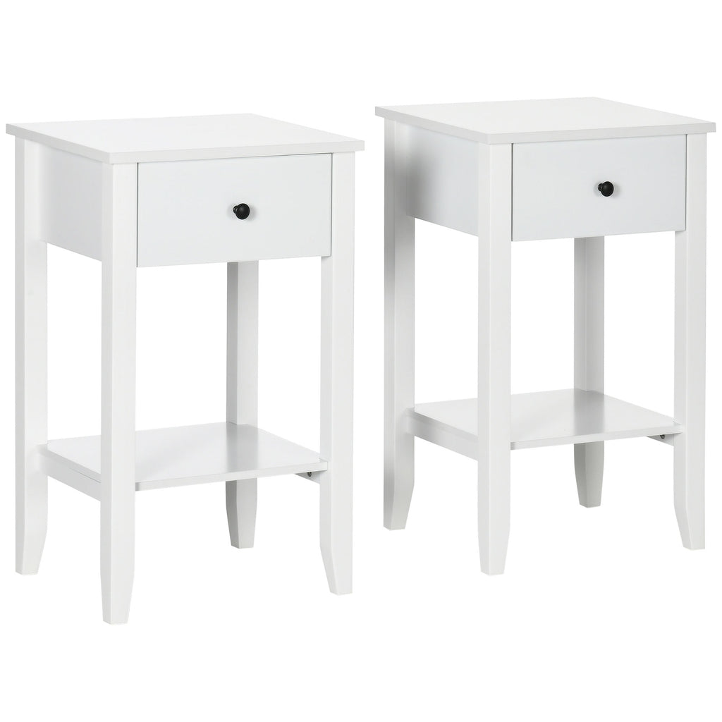 This multi-purpose end table combines modern style with practicality, featuring a smooth top, a slide-out drawer, and a bottom-tier shelf for extra storage and display. It's an ideal addition to your bedroom, living room, or office as a nightstand, sofa end table, or small organizer. The 2-tier design helps keep your space tidy, offering room for books, blankets, and other essentials. The raised base design keeps your items safe from moisture, while the smooth, flat surfaces make it easy to clean and maintain. Made of MDF with water-resistant paint, it holds up to 88 lbs, making it both functional and durable.