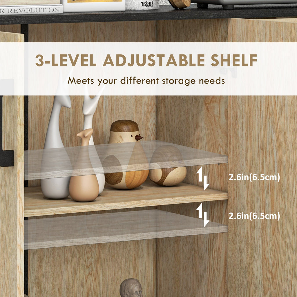 Ample Storage Space: Includes adjustable shelf, bottom shelf, and two glass-paneled doors for visibility and easy access.