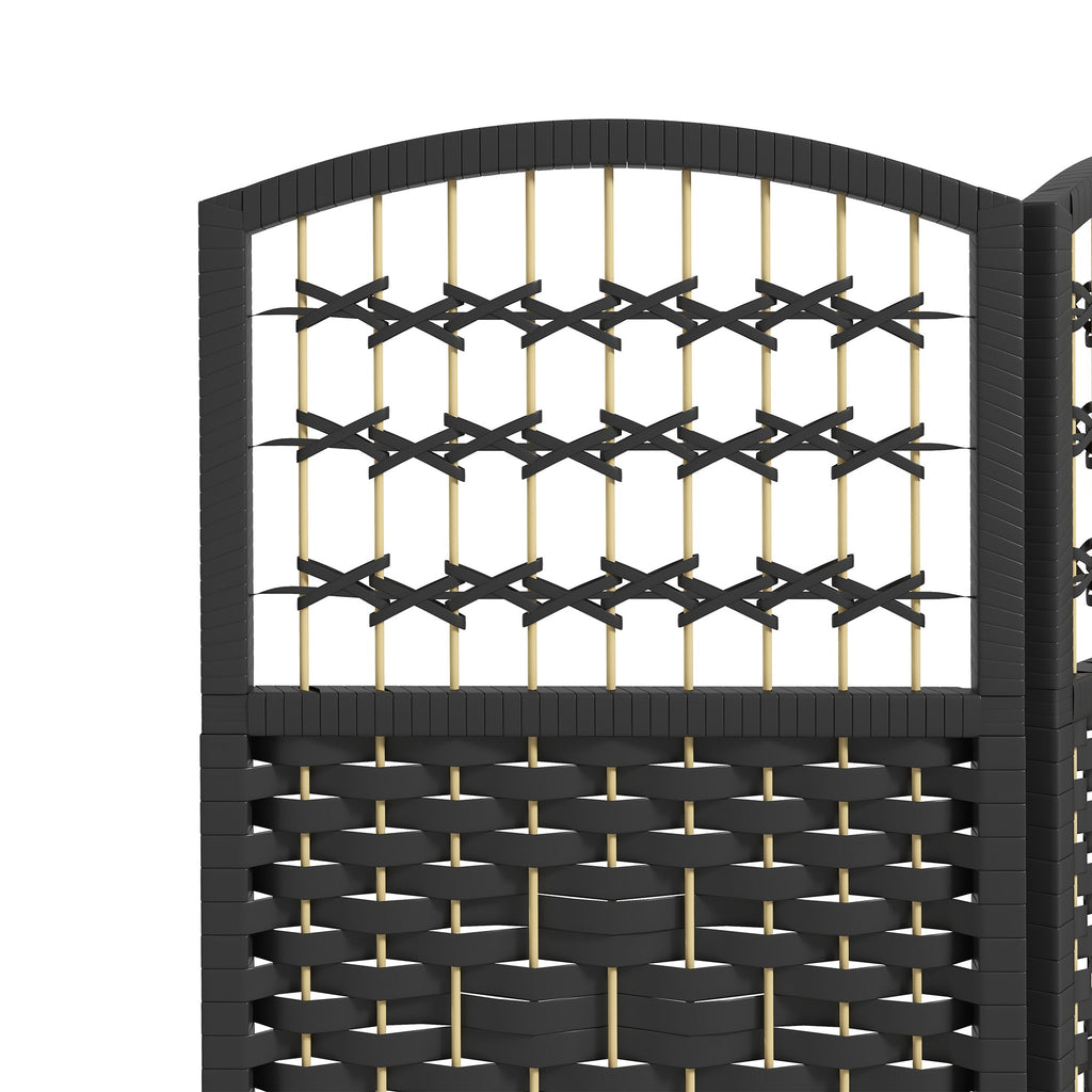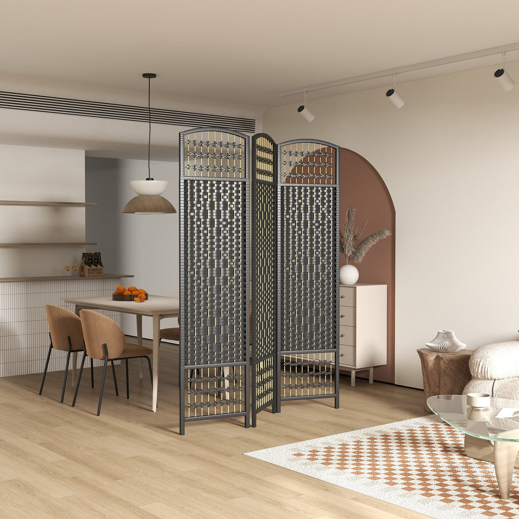 Enhance your home with this chic 6-panel room divider, designed to add both privacy and style to any space. Whether you're looking to create an intimate and cozy area within a larger room or simply add a decorative touch, this screen provides the perfect balance of separation and connection. Featuring a beautiful hand-woven design crafted from paper rope and bamboo sticks, its intricate pattern and curved arch top bring a warm, rustic charm to any décor. Built with a solid wooden frame and sturdy metal hinges, this room separator ensures durability while allowing for natural air circulation and ambient lighting. Its double-sided woven construction adds an elegant touch to both sides, making it a functional and stylish addition to your home. When not in use, simply fold the screen and store it away with ease, thanks to its lightweight yet sturdy design. Best of all, this 6-panel partition arrives fully assembled and ready to use right out of the box—making it a hassle-free solution for transforming your space instantly.
