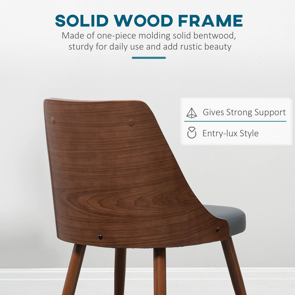 Add a touch of elegance and comfort to your home with this set of two modern dining chairs. Designed for versatility, these chairs are perfect for use in the kitchen, dining room, living room, bedroom, or office. Featuring a contemporary design, each chair includes a medium-height solid wood backrest with classic nailhead trim and sturdy steel legs, blending modern and traditional elements seamlessly. The soft cushioned seat and ergonomic curved backrest, covered in smooth PU leather, provide excellent comfort and support while being easy to clean. Built for durability, the strong steel legs ensure stability and longevity, while plastic non-slip foot pads protect your floors from scratches. Whether used as dining chairs, makeup chairs, or accent pieces, these space-saving chairs tuck neatly under a desk or table when not in use. With overall dimensions of 19.9" W x 23.2" D x 32.3" H (50.5 x 59 x 82 cm) and a weight capacity of 264 lbs (120 kg), they offer both style and function. Assembly is required.