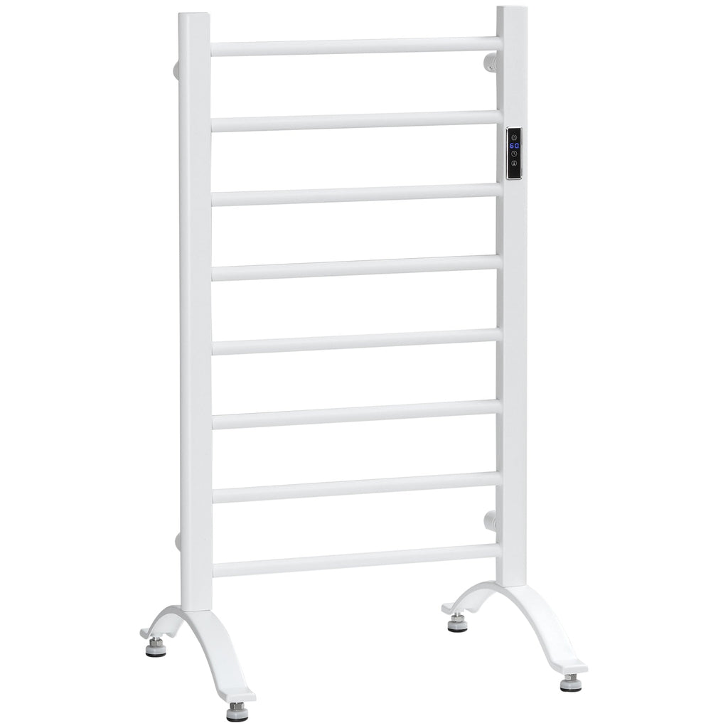 Choose between wall-mounted or freestanding options with this versatile towel warmer that combines convenience and functionality. Its spacious 8-bar design ensures even heat distribution, making it ideal for hanging multiple towels or garments. The compact size (19.75" W x 31.5" H) allows for portability, perfect for use in different rooms. With an adjustable temperature range from 30°C to 60°C, and a built-in timer allowing you to select heating times from 1 to 8 hours, this towel warmer is energy-efficient and customizable to your needs. The overheat protection system adds safety by automatically switching off the heater if it gets too hot. IPX4 splash-proof construction makes it perfect for bathroom use. Whether mounted on the wall or used as a freestanding unit, this towel warmer is a must-have for keeping your towels warm and dry.