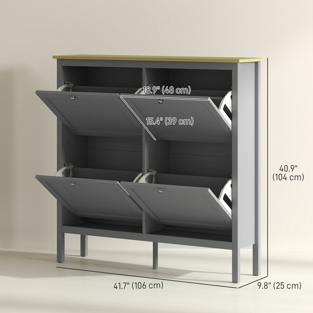 Space-Saving Storage: 4 flip drawers with adjustable shelves, holding up to 20 pairs of shoes.