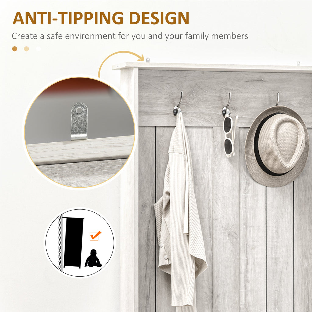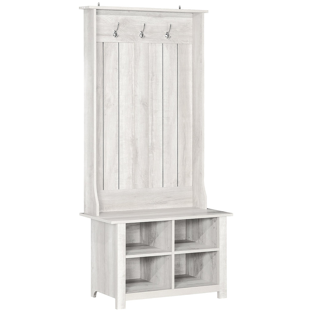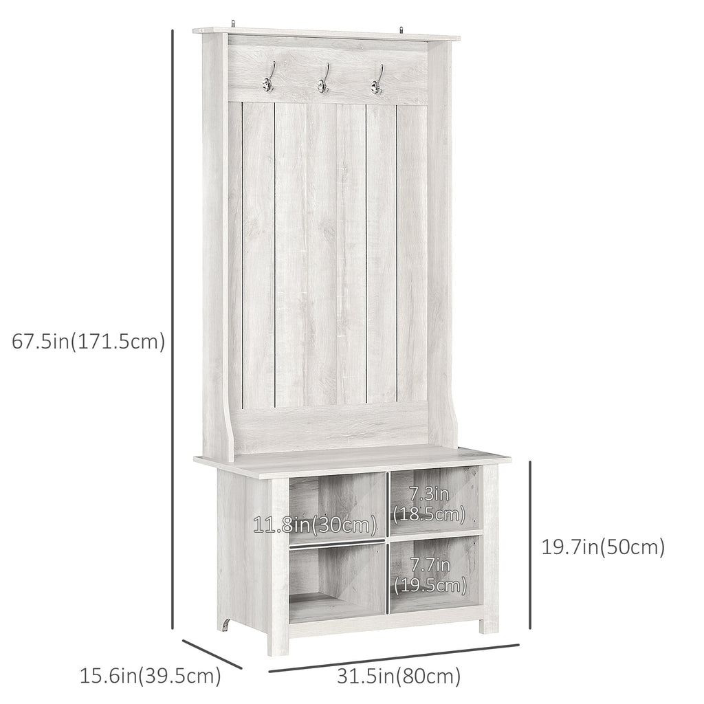 Multifunctional Design: Combines open shelves, a coat hanger, and a shoe bench for convenient storage.