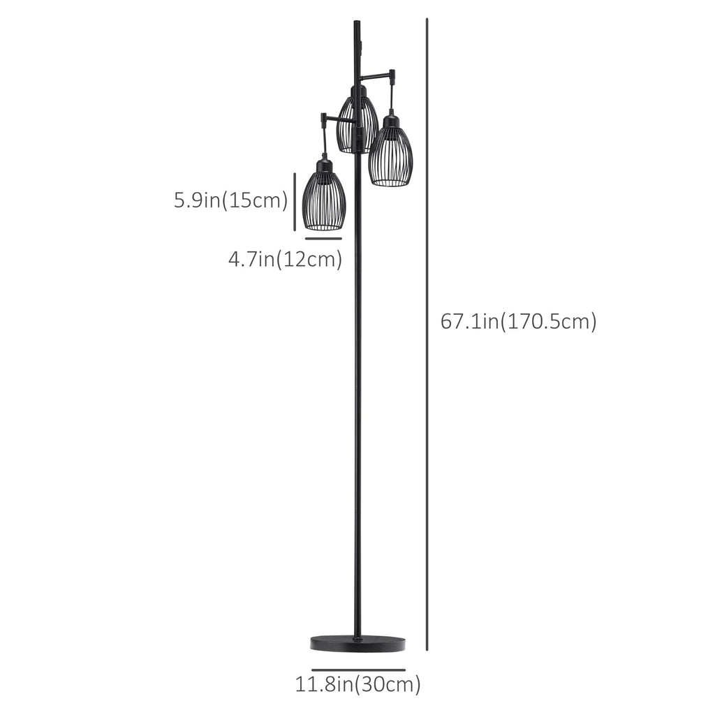 This stylish floor lamp brings industrial elegance to any space with its sleek black steel pole and three black hanging lamp shades. Perfect for adding a modern touch to your living room, bedroom, office, or reading nook, this lamp features a dimmable function, allowing you to adjust the brightness to suit your mood or activity. The rotary switch on the pole lets you easily control the light intensity. With three E26 standard sockets, this lamp is compatible with various bulbs, including LED, halogen, and incandescent (bulbs not included, max power 40W). The sturdy steel frame ensures high stability, while the round base adds balance and security, making it a durable and functional addition to your home. Whether you need focused light for reading or ambient lighting for relaxation, this lamp meets all your needs.
