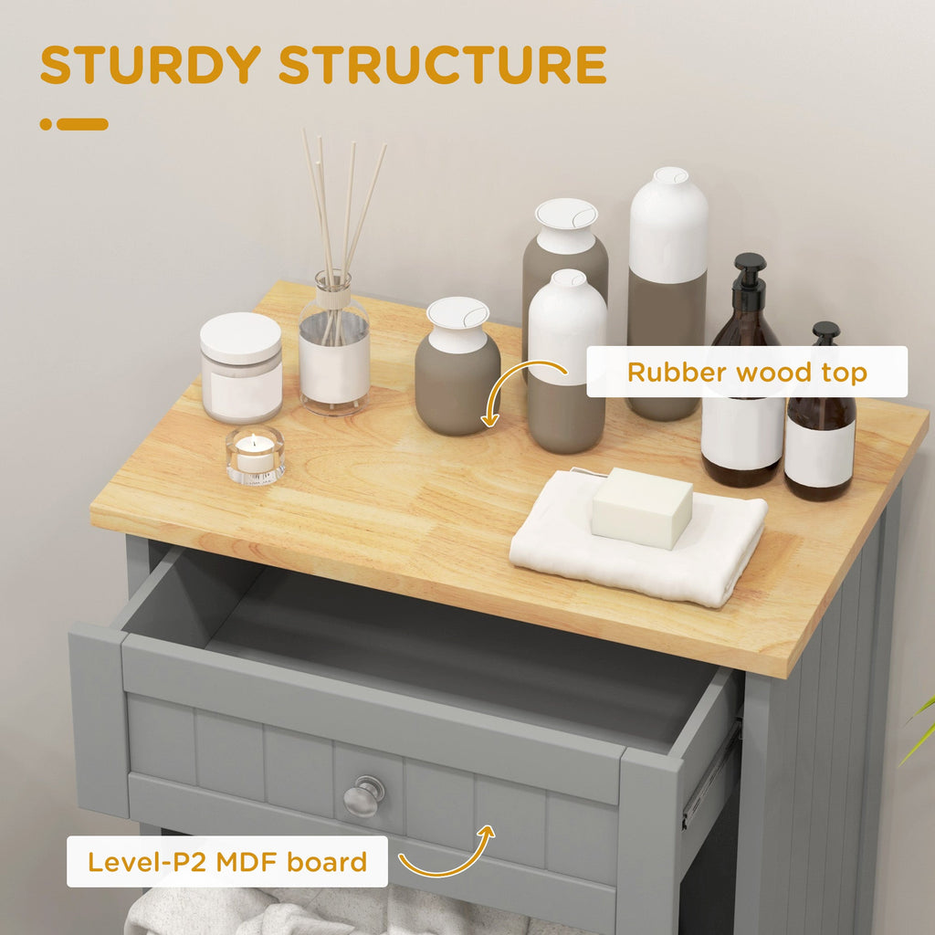 Space-Saving Design: Features a drawer and a tilt-out cabinet for efficient organization, with a top surface for kitchen appliances.