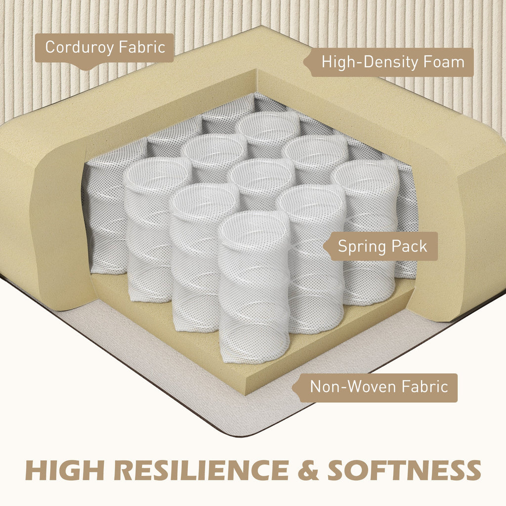 Upgrade your living space with this stylish and functional L-shaped sectional sofa, designed to blend modern elegance with everyday comfort. This cozy combination of a two-seater sofa and a chaise lounge offers ample space to stretch out and relax while adding a sophisticated touch to your living room. Built for lasting support, the thick, high-density foam cushions are reinforced with a pocket spring seat system, maintaining their shape and ensuring superior comfort. The soft ridged corduroy fabric, plush 7.5" (19 cm) seat cushions, and 7.9" (20 cm) doll cotton-filled back cushions provide an inviting feel. Crafted from a durable multilayer board frame and supported by eight sturdy legs, this sofa easily accommodates up to 882 lbs (400 kg). The sleek black legs and clean-lined silhouette make this sectional a versatile addition to any home decor.