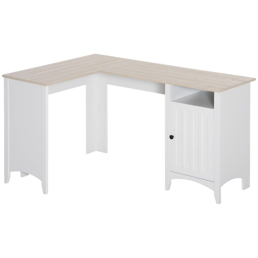 Maximize your workspace with this L-shaped corner desk, designed to fit perfectly in small office areas, bedrooms, or living rooms. With its space-saving L-shape, this desk provides a practical and stylish solution for home offices or study rooms. The spacious tabletop, constructed from two durable board panels, offers ample room for writing, gaming, or working, while also accommodating books, documents, and daily essentials. Combining both open and concealed storage, this desk features an accessible open shelf for quick access to frequently used items, alongside a private file cabinet with an adjustable shelf for customizable storage. Built with a sturdy particleboard and MDF structure, finished with a melamine surface for easy cleaning, this desk ensures durability and low maintenance. Whether you need a functional workspace or an organized home office setup, this L-shaped desk is a perfect choice.