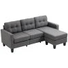 Enhance your living space with a stylish L-shaped sofa from HOMCOM. The contemporary design, button detailing, and breathable linen fabric add a modern touch to any room. Experience unparalleled comfort with the three-seater sofa, complete with an ottoman and a spacious seat for seating up to three people.