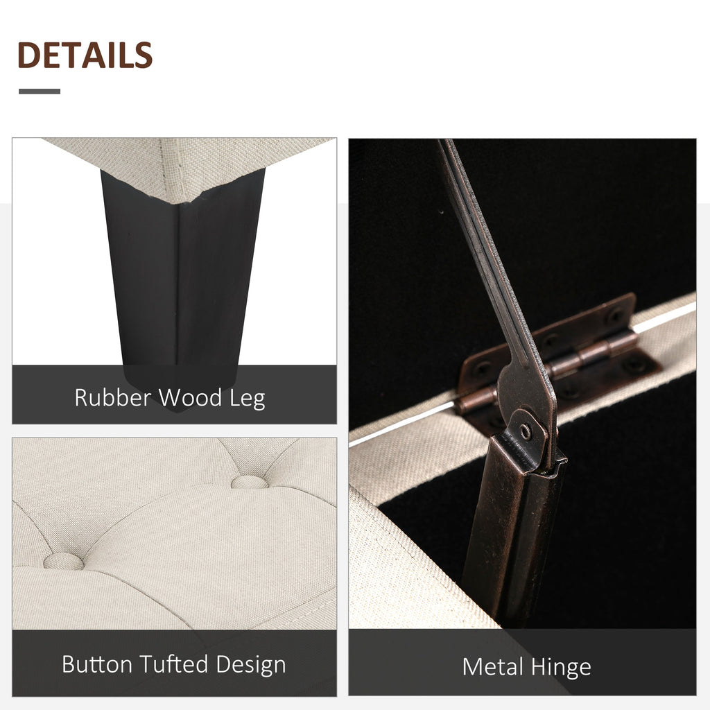 This classic and deluxe storage ottoman is a perfect blend of style and functionality, designed to complement most home decor styles. Upholstered in premium linen fabric, it adds a cozy and sophisticated touch to your living room, bedroom, or entryway. The high-density sponge cushion provides extra comfort, making it ideal for use as a footstool, bed bench, or even a small storage unit. Beneath the lid, you'll find ample storage space for your belongings, helping keep your space organized and clutter-free. Supported by durable rubberwood feet, this ottoman ensures long-lasting quality and stability, while adding a chic, cozy accent to any room.