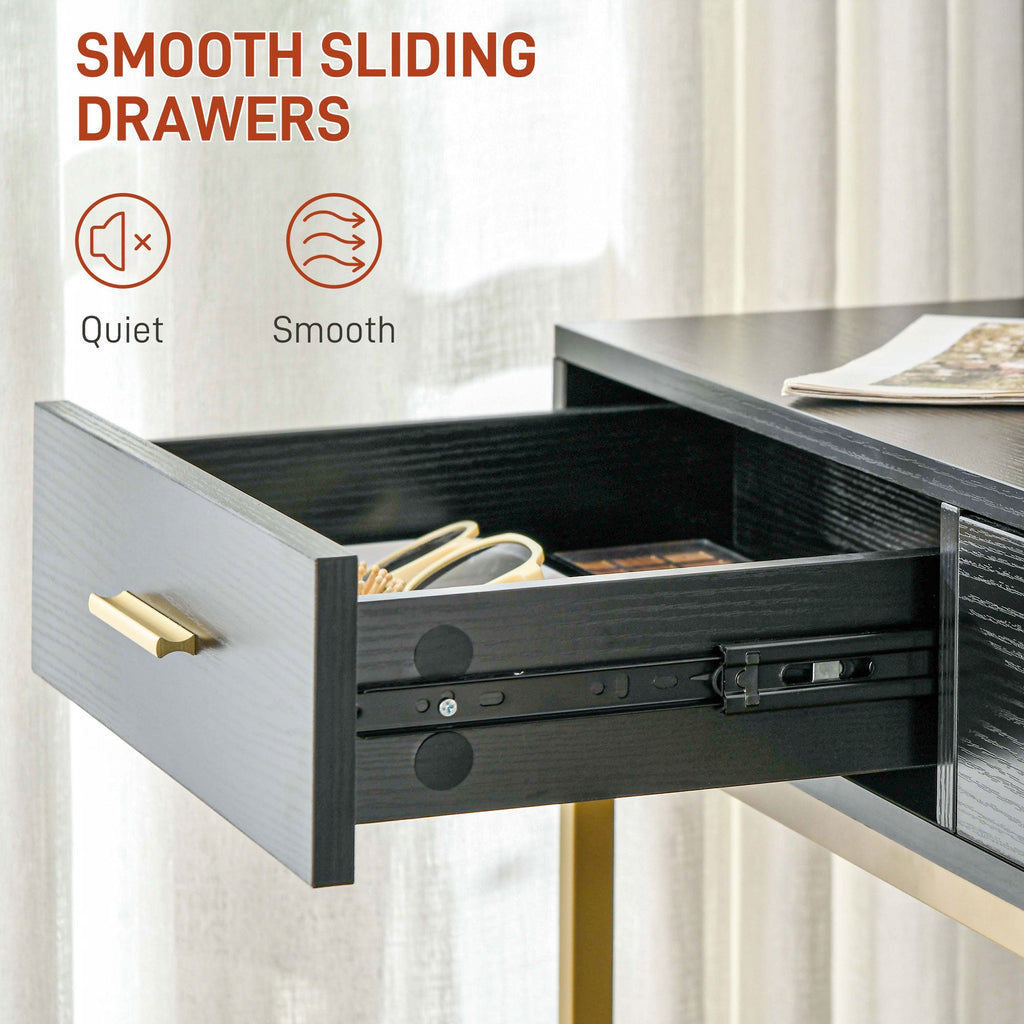Spacious Storage: Includes a large tabletop, two smooth-sliding drawers, and six open compartments for efficient organization of beauty essentials and accessories.