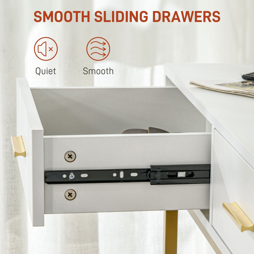 Spacious Storage Solution: Includes a large tabletop, two drawers, and five open compartments for ample storage of beauty essentials.
