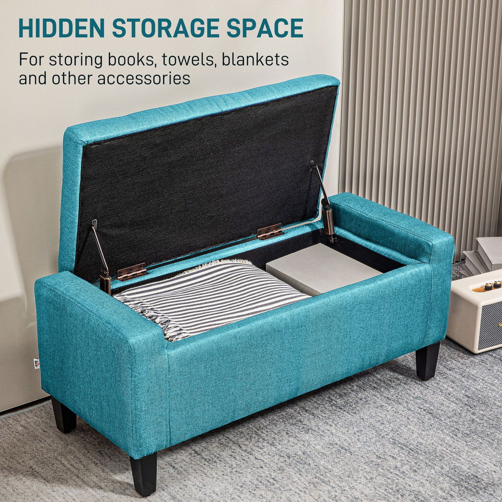 Versatile and Comfortable: This ottoman with storage can be used as a footstool, bed bench, tabletop, and small storage furniture. High-density sponge and premium linen cover give it extra soft and comfortable for sitting.