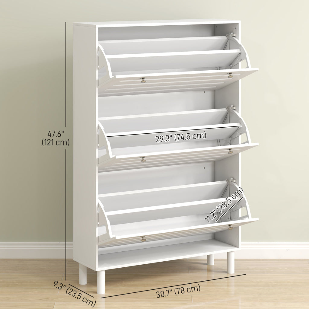 Three flip drawers with two-level adjustable shelves, holding up to 24 pairs of shoes