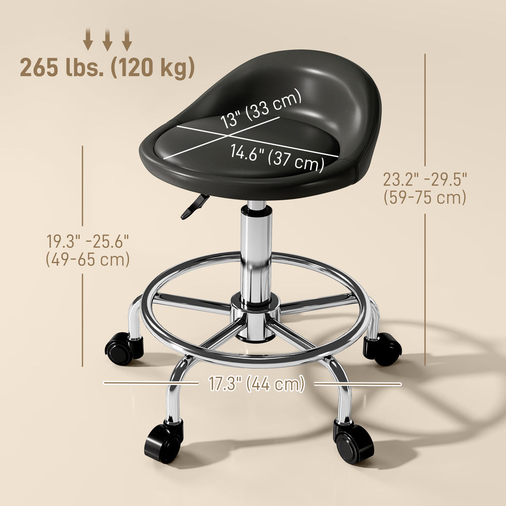 Enjoy maximum comfort and versatility with this adjustable rolling stool, designed to provide a comfortable seating experience in various professional and home settings. Filled with thick foam and covered in easy-to-clean PU leather, this chair features a supportive back and footrest, making it ideal for long hours of sitting, whether you're working in a salon, tattoo parlor, or home office. The height is easily adjustable, allowing you to customize the seat height from 23.2" to 29.5", ensuring optimal positioning for different tasks. The stool is equipped with five universal wheels, offering smooth mobility and 360-degree rotation, so you can move effortlessly across different floor surfaces, whether you're working in a busy space or simply need to adjust your position. Its elegant and classic design makes it a stylish addition to any environment, including barbershops, coffee shops, or as a massage or lash chair. Assembly is simple, and it supports a weight capacity of up to 264 lbs (120 kg), making it a durable and reliable seating option for a variety of purposes.