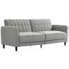 Made with durable beech wood legs, this couch bed is both stable and stylish, with a button-tufted backrest for a touch of elegance. Sofa dimensions are 83.5" W x 32.7" D x 33.5" H (212 x 83 x 85 cm), while bed dimensions are 81.5" L x 44.1" W x 18.1" H (207 x