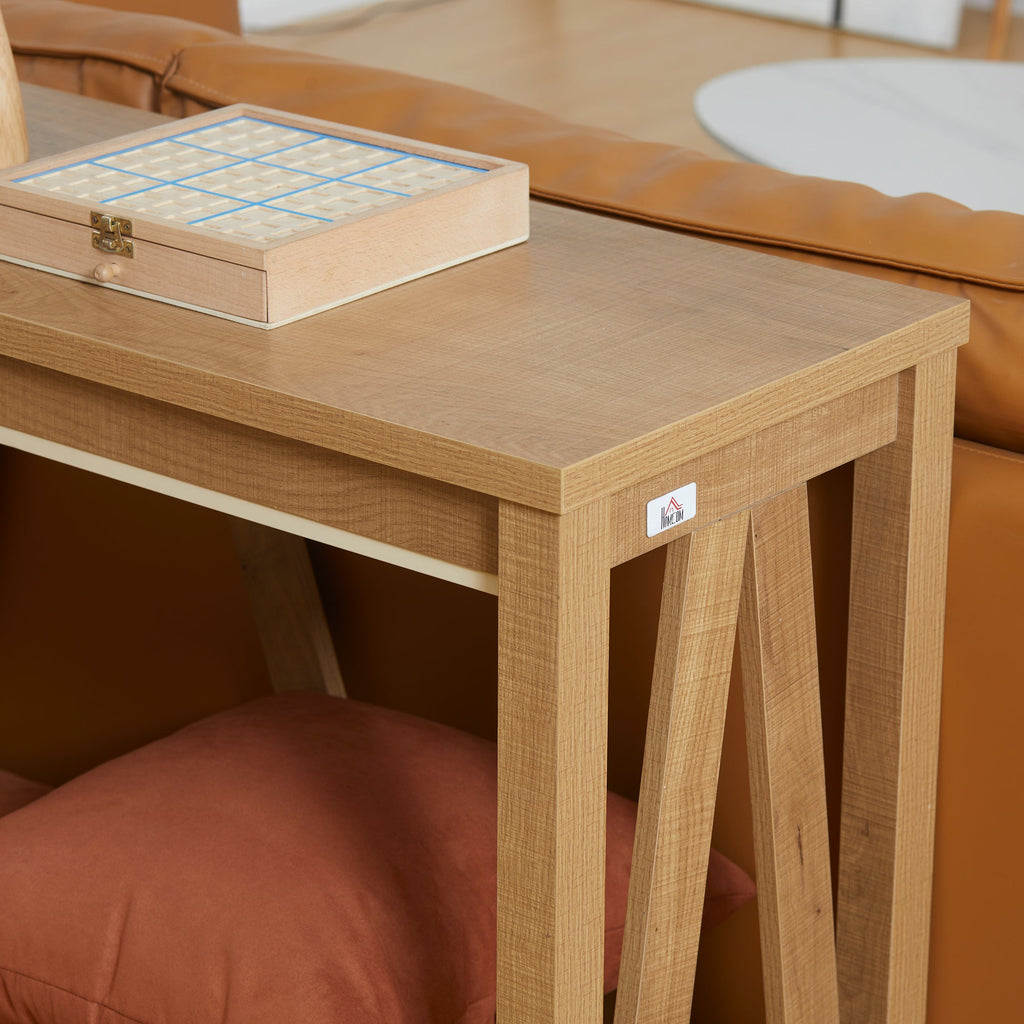 This farmhouse-style behind-sofa table makes a striking statement in any room, with its barn-inspired design and rustic wooden texture that brings a charming, country vibe to your home. Whether you have souvenirs from your travels, potted plants, or decorative items, this table provides the perfect space for display. The entryway table features a bottom slatted shelf, which supports up to 66 lbs (30 kg) of items like plants, books, or treasured decorations. Not just a console table, this versatile piece can be used in various ways: as a small console table in the foyer or beneath the staircase, as a behind-couch table in the living room, a plant stand beside the window, or even as a buffet table in the dining room. Crafted from sturdy particleboard, this console table is built to last, and with the included anti-tipping hardware, you can securely attach it to the wall for extra stability, making it a safe and reliable addition to your home.