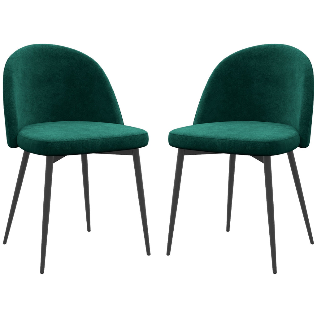 Looking for dining chairs that enhance your home décor? Our Dining Chairs Set offers an elegant, armless design with softly curved lines that add a sophisticated touch to your dining room, living room, kitchen, or bedroom. Featuring a curved back, wide seat, and thick foam padding, these chairs provide exceptional comfort, allowing you to sink in and relax for extended periods without discomfort. The velvet-like upholstery offers a soft, luxurious feel that's smooth to the touch and friendly to sensitive skin. Built with a robust metal frame, these chairs are both stable and durable, ensuring long-lasting use. Non-skid foot pads protect your floors from scratches, making these chairs a practical addition to any space.