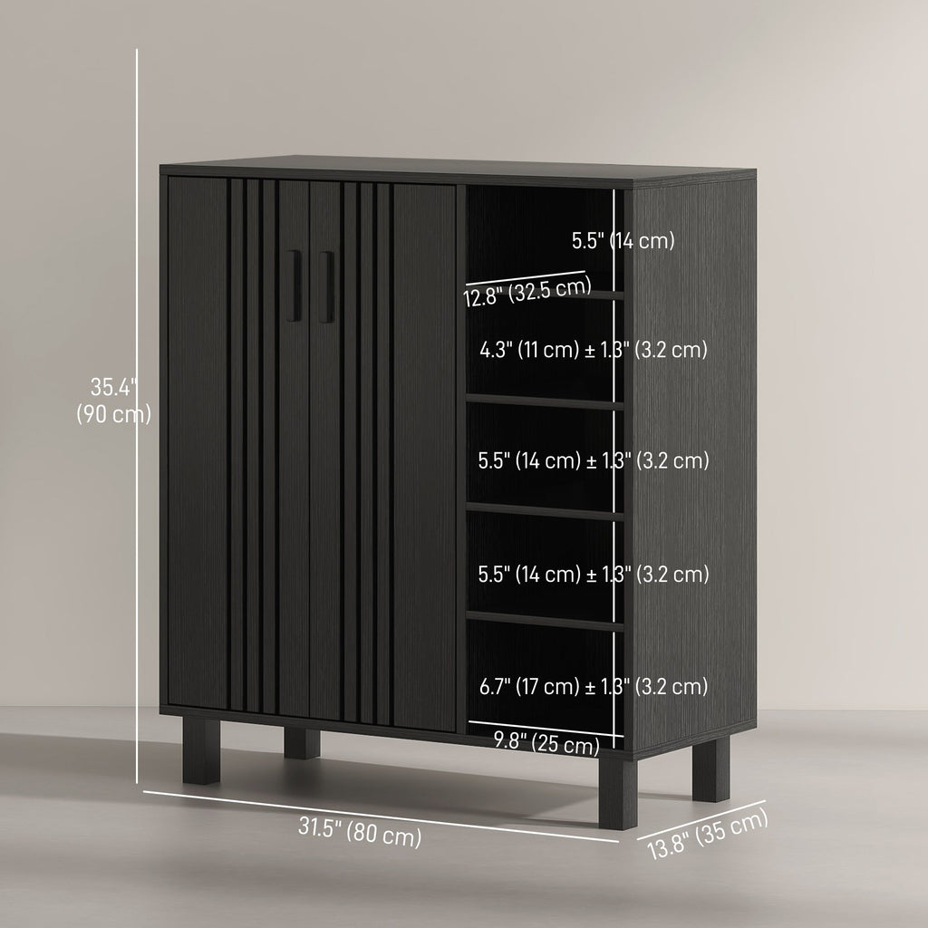 Closed and Open Storage: Includes a 5-tier cabinet and 5-tier open shelf, holding up to 17 pairs of shoes (up to CA Men Size 10). Adjustable shelves (6 total) with 3 levels for customizable storage.