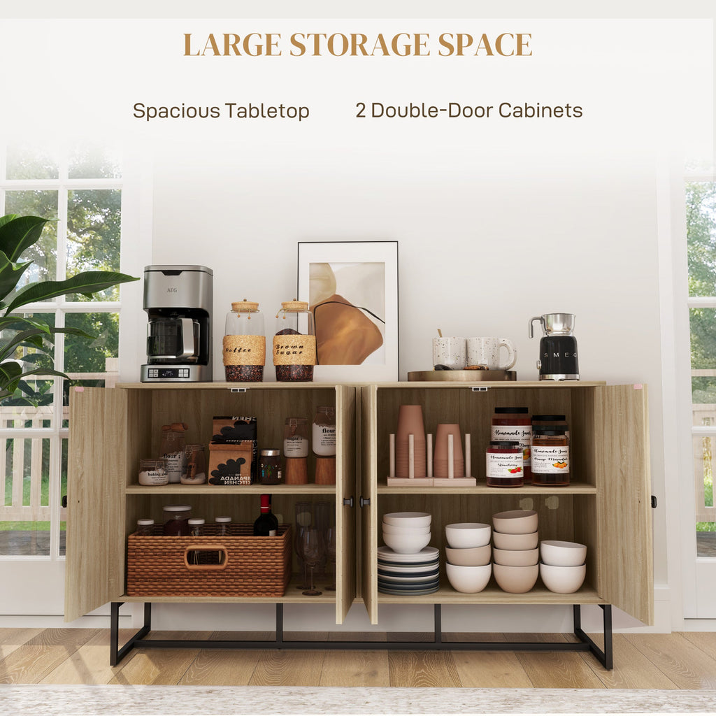 Sophisticated and stylish, this sideboard cabinet is the perfect addition to any modern home. With a striking Chevron pattern and a chic two-tone finish, it exudes elegance while offering practical storage solutions. The unique square handles add a touch of contemporary flair, making it a standout piece in your living room. Featuring two two-tier cabinets with adjustable shelves, this cabinet provides customizable storage for a variety of items. The magnetic doors ensure smooth operation and secure closure, offering everyday convenience. Whether used as a storage solution for pots and pans in the dining room, keeping essentials in the hallway, or showcasing decor in the living room, this multi-functional design enhances both functionality and style. Crafted with a durable steel base and reinforced steel pipes, this cabinet offers exceptional stability. It also includes non-slip foot pads and anti-tipping straps for added safety, ensuring worry-free use.