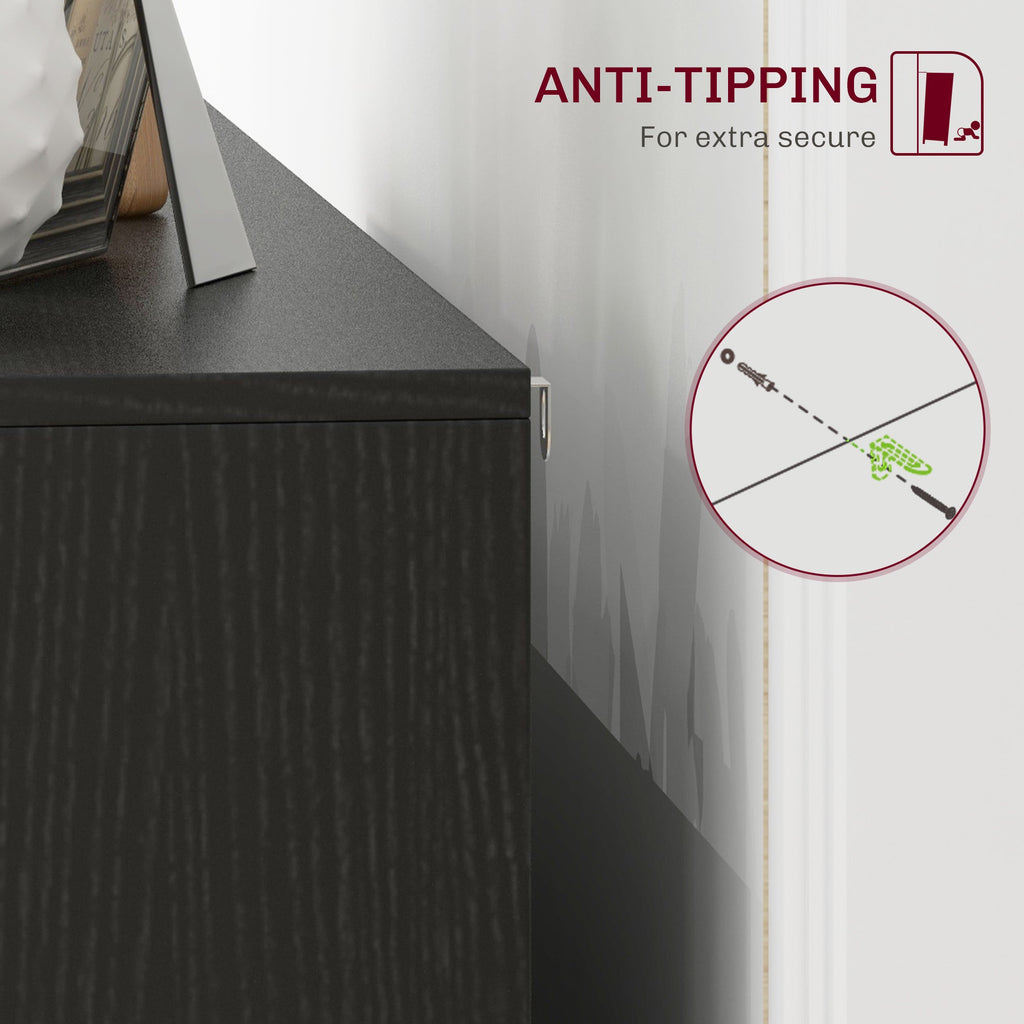 Add a touch of modern style and functionality to your space with this versatile sideboard. Designed with clean lines and an embossed chevron pattern on the door panels, it offers a chic and timeless look for your home. With two cabinets featuring adjustable shelves (repositionable at three levels), you can store a variety of items, from daily accessories to kitchenware and dinner plates. The high-quality particleboard frame and pinewood legs ensure both sturdiness and easy maintenance, while the elevated base prevents moisture damage. The anti-tipping hardware enhances safety, making it perfect for families with children. Whether used as a kitchen storage cabinet, coffee table, dining room server, or TV console, this piece is sure to enhance any room in your home.