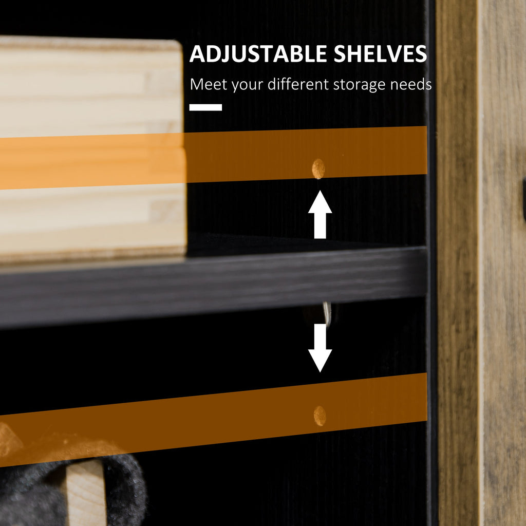 Ample Storage: Includes three open shelves and two cupboards, with adjustable shelves to suit different storage needs.