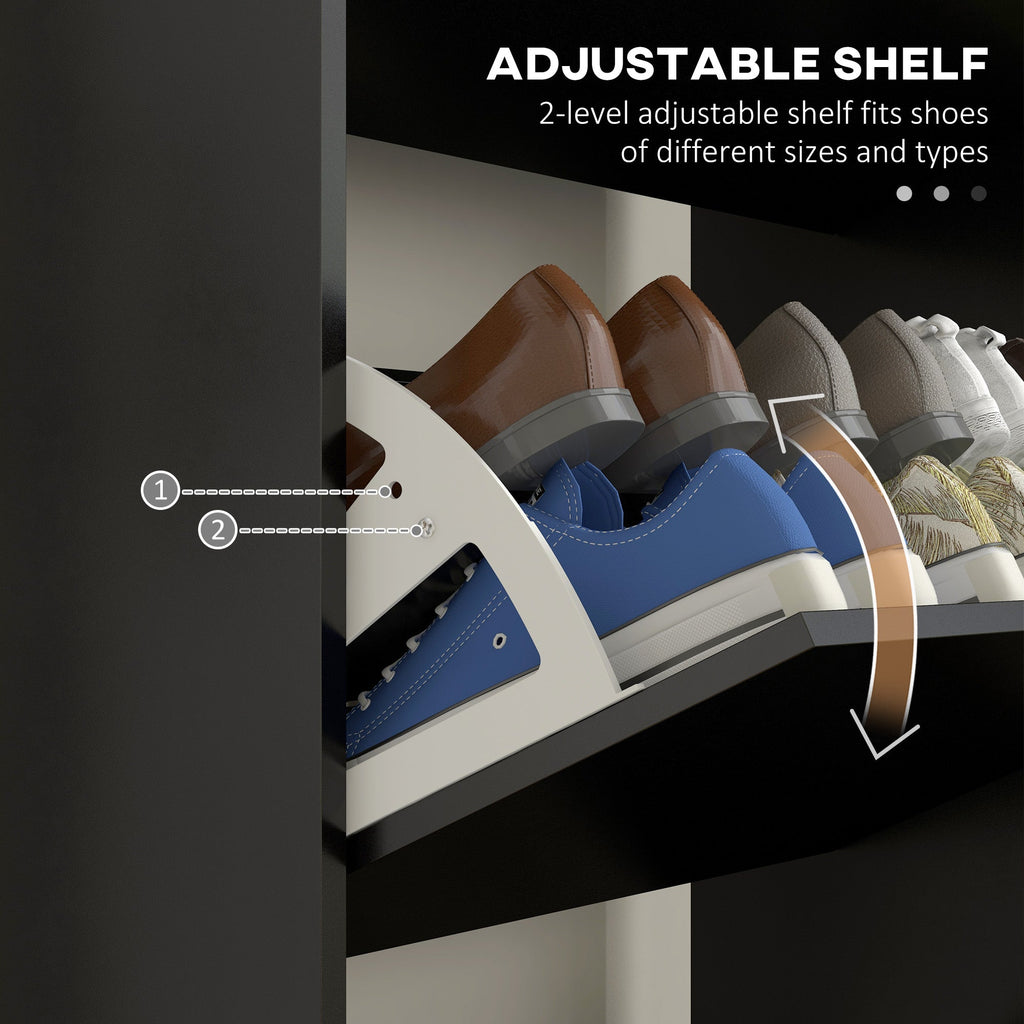 Adjustable Storage Solution: Three flip drawers with two-level adjustable shelves accommodate up to 18-24 pairs of shoes (Max Shoe Size: CA Men Size 10.5).