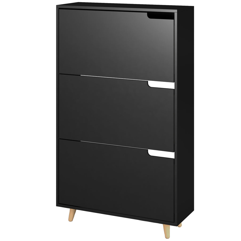 Maximize your entryway or hallway space with this sleek and functional shoe cabinet. Featuring three flip drawers with two-level adjustable shelves, it provides ample storage for 18-24 pairs of shoes (up to CA Men Size 10.5), allowing you to keep your footwear neatly organized and easily accessible. Its narrow, slim design makes it an ideal solution for small spaces without sacrificing style or practicality. Built for safety, the cabinet comes equipped with anti-tipping straps to securely attach it to the wall, preventing accidental tipping. The sturdy construction, standing on four legs with non-slip feet, ensures stability and prevents floor damage. Perfect for entryways, hallways, or closets, this cabinet offers a balance of convenience, safety, and modern design.
