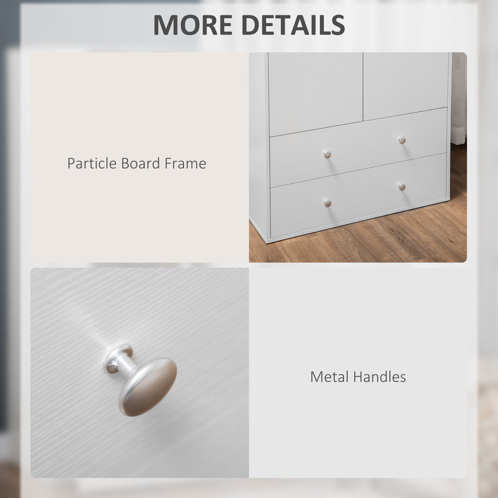 Spacious Storage: Main wardrobe cabinet with a clothes rail for hanging garments, plus two slide-out drawers for folded clothes, shoes, and accessories.