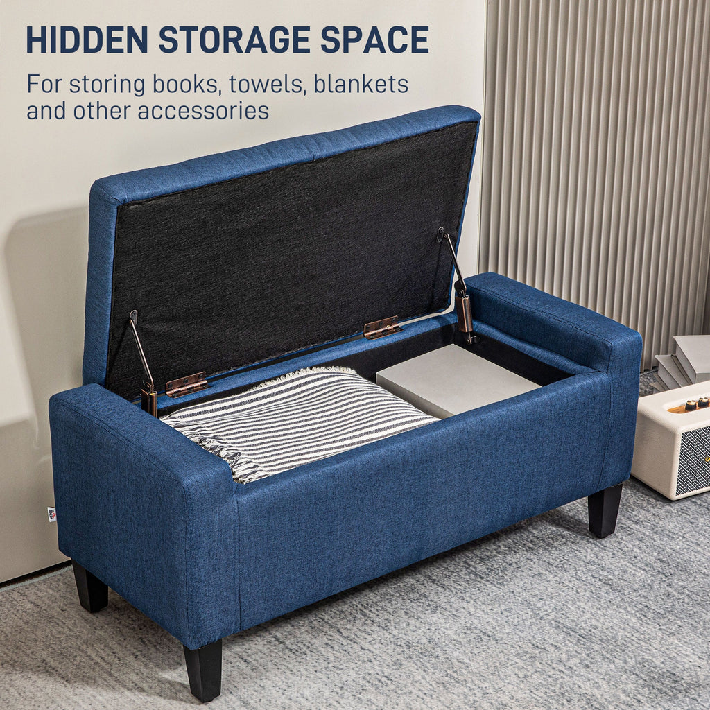 Enhance your home with this classic and deluxe storage ottoman, designed to complement a variety of décor styles. The premium linen cover adds a touch of coziness, making it a perfect addition to your living space. This versatile ottoman serves multiple functions—it can be used as a footstool, bed bench, tabletop, or compact storage furniture. Crafted with a high-density sponge and premium linen fabric, it provides a soft and comfortable seating experience. Featuring ample storage space, this ottoman is both a decorative accent and a practical organizer for your belongings. Built with durable rubberwood feet, it ensures long-lasting stability and a sophisticated look.