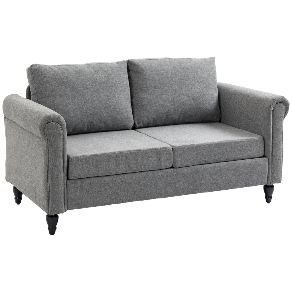 Bring a touch of vintage elegance into your home with this beautifully designed love seat sofa. Featuring rolled arms and gourd-shaped legs, this timeless piece is a statement of charm and sophistication. Wrapped in breathable chenille-feel fabric, the overstuffed back cushion and padded seat cushion are designed for exceptional comfort, incorporating S-spring and elastic band technology for optimal support. Built for longevity, the solid eucalyptus wood and metal frame, paired with rubberwood legs, ensures stability and durability. Adjustable feet allow for secure placement even on uneven surfaces. Whether used as a cozy reading nook in the bedroom or as extra seating for gatherings, this small sofa effortlessly adapts to your space, creating a warm and inviting atmosphere. Cushions and backrests arrive vacuum-packed and require 48 hours to fully expand after unpacking.