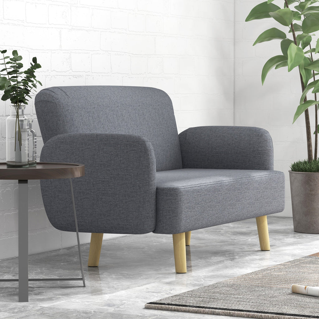 Bring comfort and sophistication to your living space with this stylish 2-seater loveseat sofa, designed for both relaxation and elegance. Featuring an 8.3-inch (21 cm) thick padded seat and armrests, this small couch provides exceptional comfort, making it perfect for unwinding after a long day or as a cozy addition to any nook. Wrapped in a soft, velvet-feel flannel fabric, it exudes luxury while maintaining a skin-friendly touch. Built for durability, the loveseat is supported by four solid rubberwood legs with a charming wood-grain finish, ensuring stability and a weight capacity of up to 528 lbs (240 kg). Its practical design includes a 7.1-inch (18 cm) clearance underneath, allowing for easy maintenance and effortless cleaning with robot vacuum cleaners. With compact dimensions of 55.1 inches wide, 29.1 inches deep, and 31.1 inches high (140 x 74 x 79 cm), this loveseat is a perfect fit for apartments, offices, or any small living area. Assembly is quick and easy, making it a convenient yet stylish addition to any home.