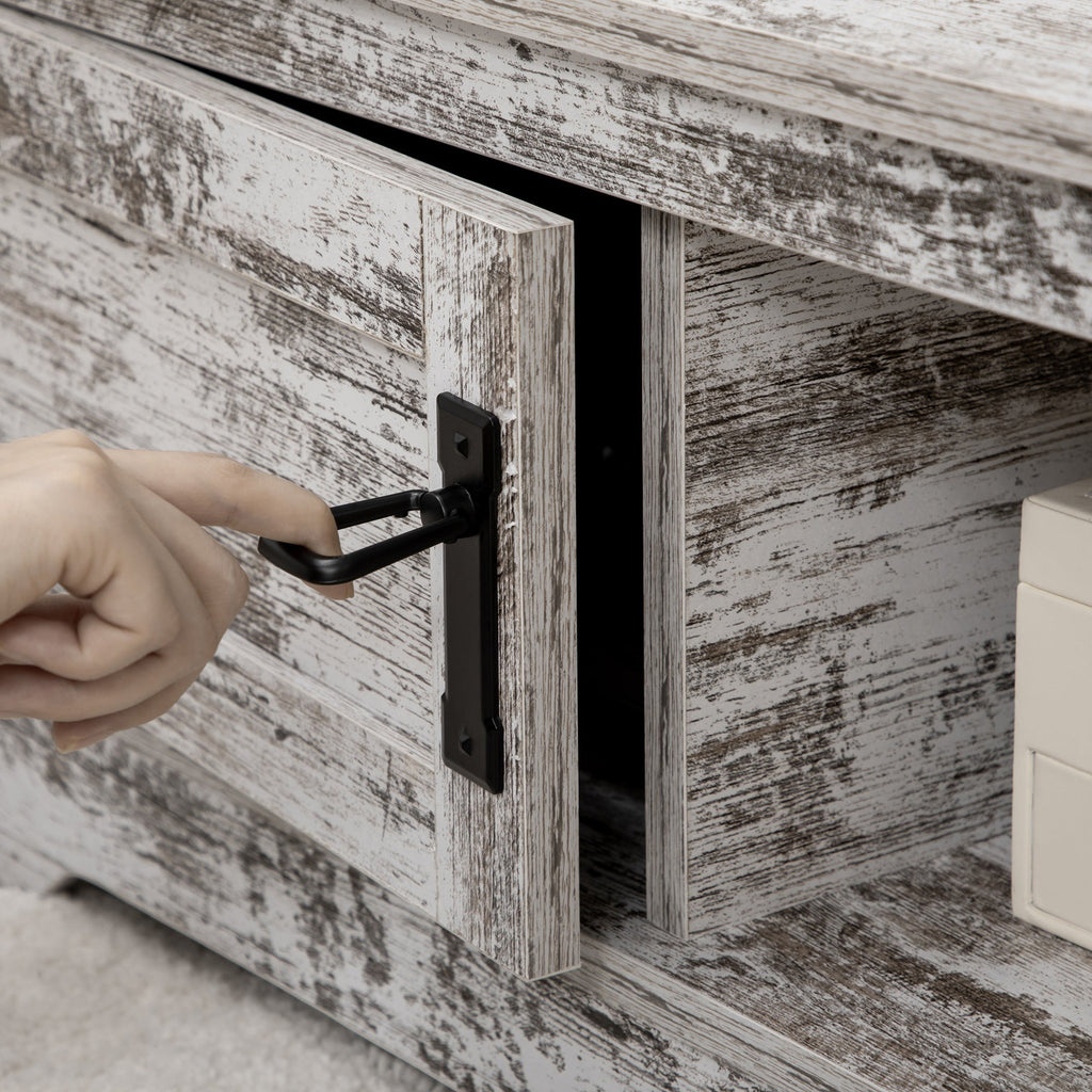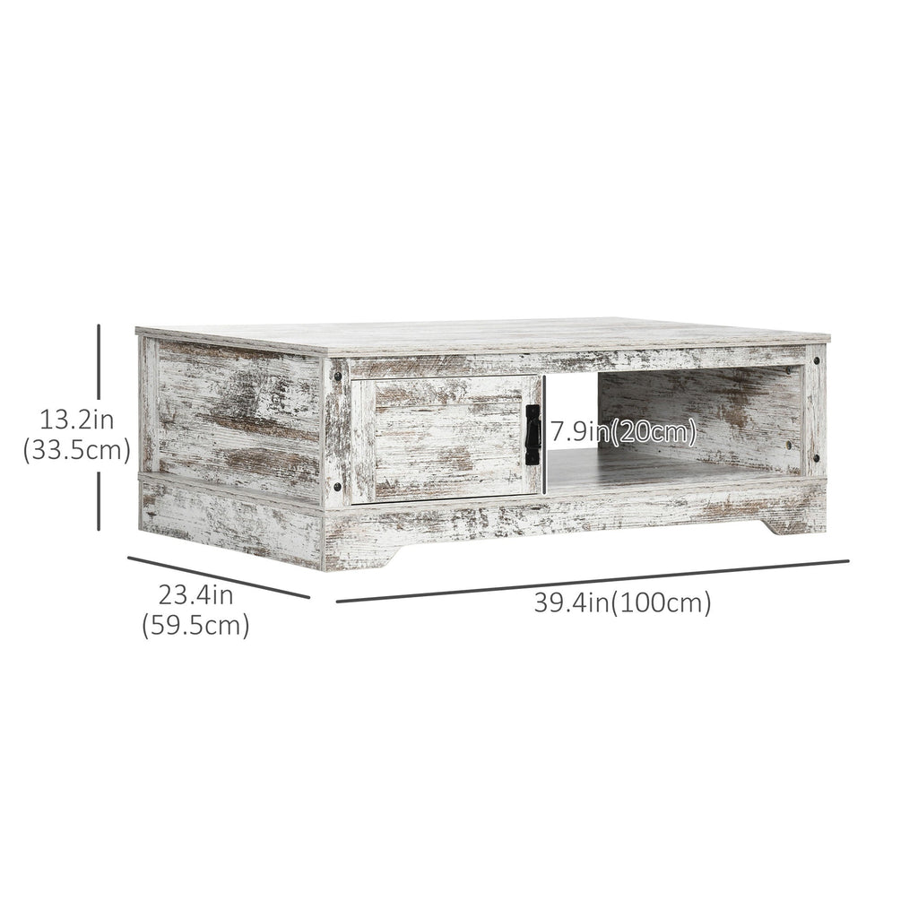 Vintage Style Coffee Table: Rustic design with open storage compartments and a cabinet with a door, blending seamlessly with various home décor styles.