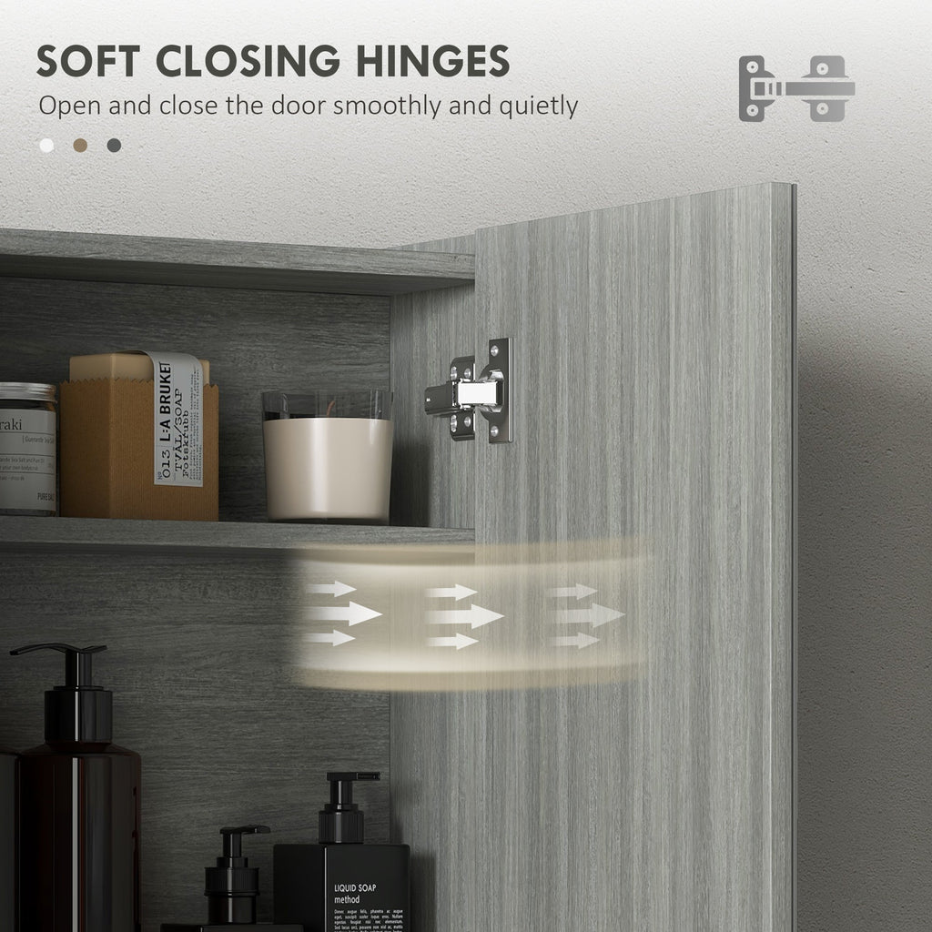 Enhance your bathroom with this stylish and functional mirror cabinet, designed to keep your essentials organized while serving as a convenient vanity mirror. The exterior features a sleek mirrored surface, perfect for your daily makeup or shaving routine, while the interior shelves provide ample storage space to keep toiletries, skincare products, and other essentials neatly arranged and protected from moisture. Inside, the cabinet offers two shelves, with the upper shelf being adjustable to accommodate items of different heights. This adjustable shelf features a reinforced slot, allowing it to be securely repositioned at three different levels for customized storage. The double mirrored doors provide easy access while making everyday grooming effortless, eliminating the need to purchase a separate vanity mirror. Soft-close cushioned door hinges ensure quiet operation, preventing any unnecessary noise. Built from high-quality MDF with a water-resistant melamine coating, this bathroom mirror cabinet is durable, stable, and easy to clean. Please note that it is not recommended for installation on plaster walls.